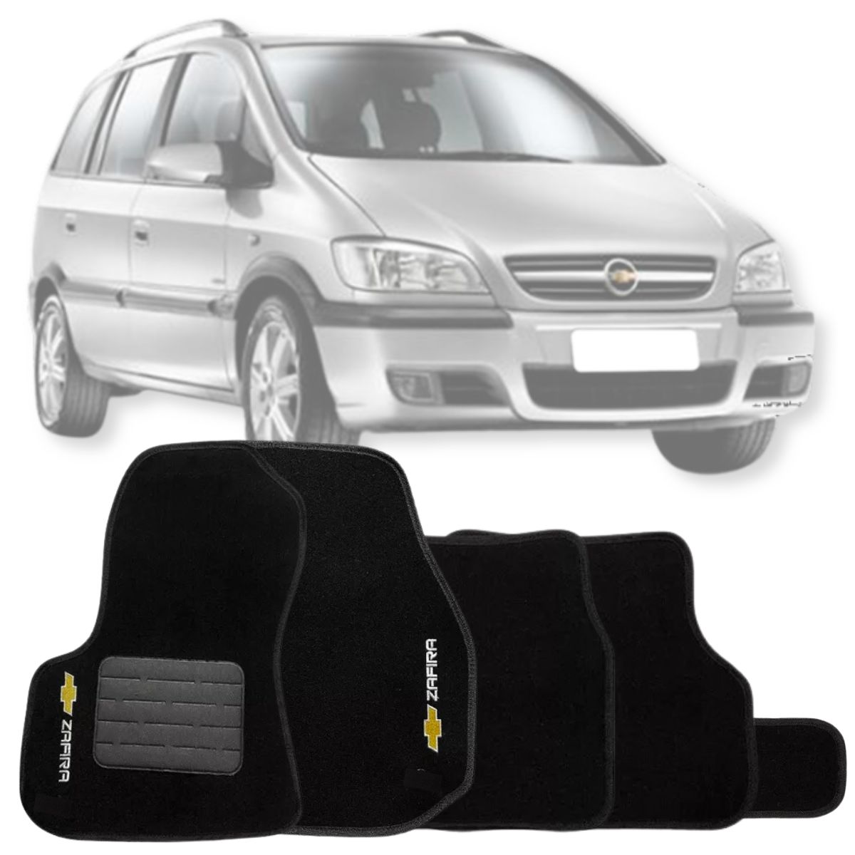 Jogo de Tapetes Automotivos em Carpete Zafira 2001 á 2012 Preto com Grafia