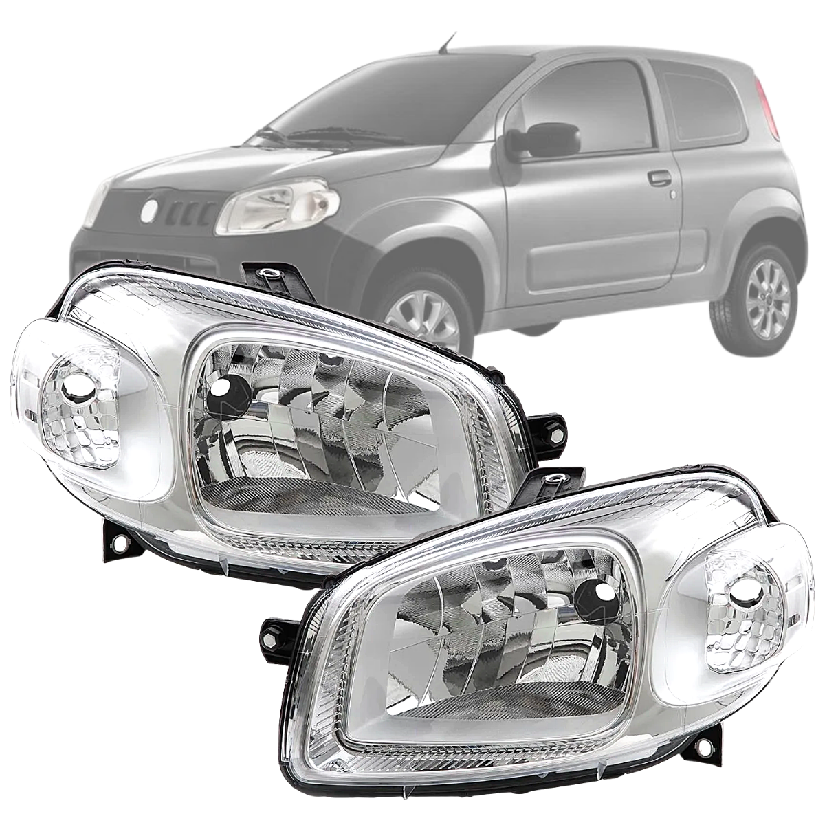 Renove o visual do seu Uno ou Fiorino com mais segurança e qualidade. O par de faróis com lente lisa e máscara cromada garante iluminação eficiente, acabamento moderno e encaixe sob medida.