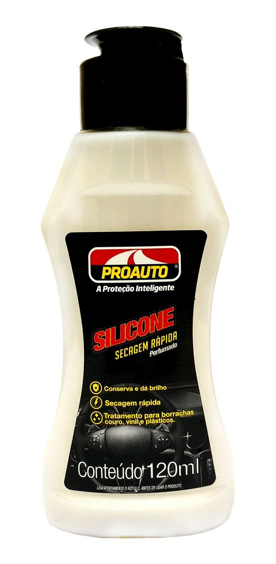 O Silicone Proauto Secagem Rápida 120ml, conta com proteção UV, conserva e dá brilho a pintura do veículo. Tem longa duração e efeito imediato dispensa o uso de solventes e também protege das ações do tempo.